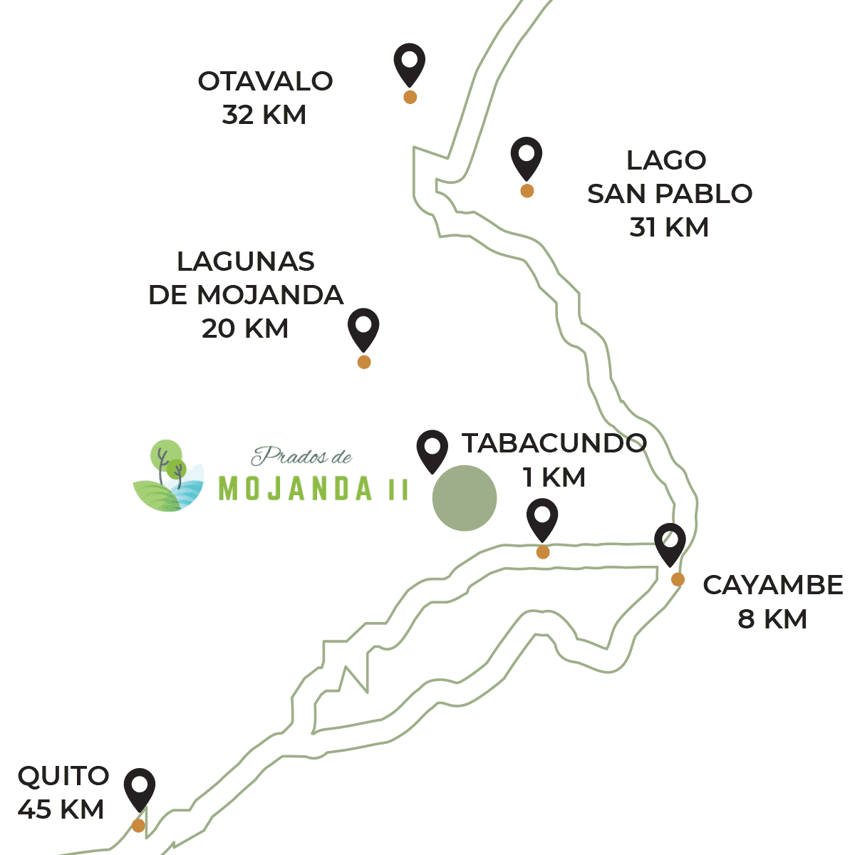 Prados de Mojanda II se encuentra en el corazón de Tabacundo, a 1km de la Panamericana Norte, se desarrolla el mejor proyecto inmobiliario del sector. Nos encontramos sobre la vía a Las Lagunas de Mojanda, a 20 kilómetros de las mismas y a tan solo 45 minutos de Quito.